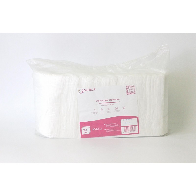 Серветки одноразові з матеріалу спайлейс . Добре вбирають, гіпоалергенні, не залишають ворсу і не розпадаються.