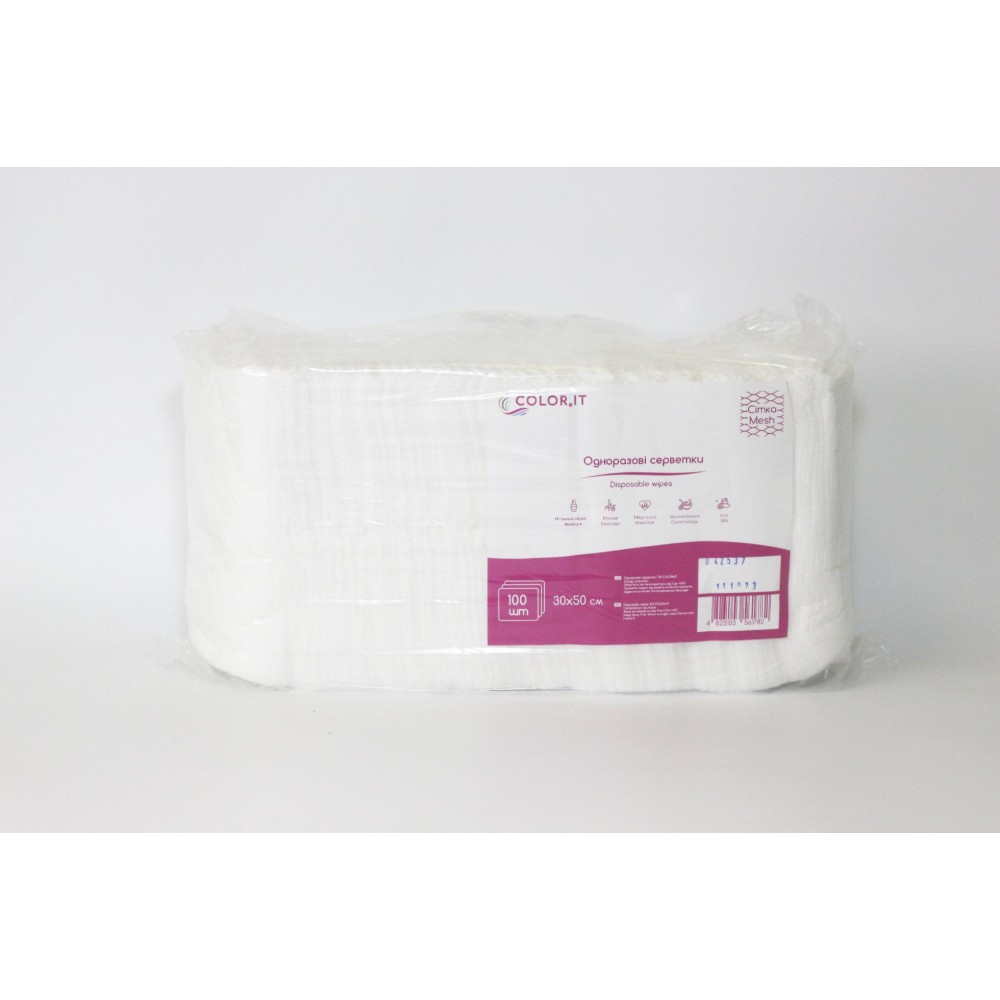 Салфетки одноразовые из материала спайлейс. Хорошо впитывают, гипоаллергенны, не оставляют ворса и не распадаются.
